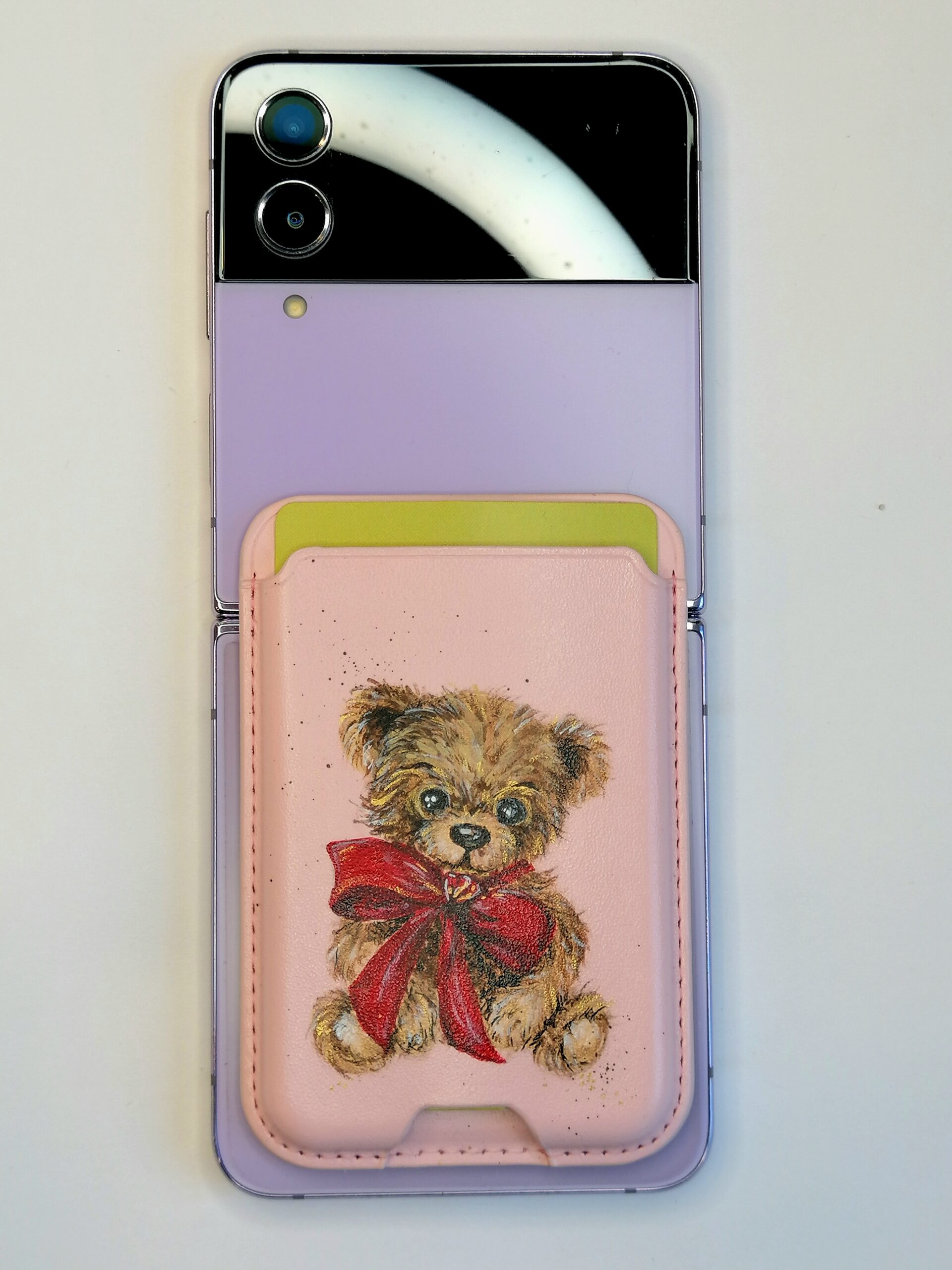 Der Magnetverschluss der Kartenhülle passt perfekt auf die Rückseite des Handys.